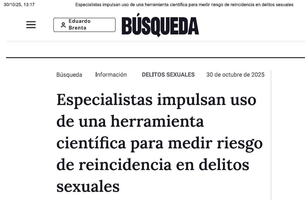 Octubre 2025: nota sobre artículo Ofensores Sexuales publicado por integrantes del Programa, realizada por el Semanario Búsqueda. Ver nota completa adjunta.