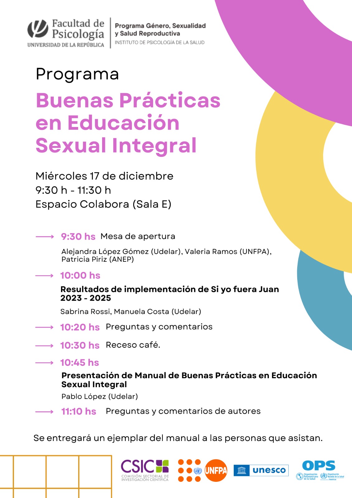 El 17 de diciembre presentamos Buenas prácticas en Educación Sexual Integral en el local de Espacio Colabora de 9.20 a 11.30 horas. Se entrega ejemplar del libro a quienes asistan. Les esperamos!
