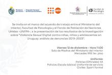 En el marco del acuerdo entre Ministerio del Interior, el Programa de Género, Sexualidad y Salud Reproductiva (IPSalud, Facultad de Psicología) y UNFPA, se presenta el Informe sobre Violencia sexual digital contra niños, niñas y adolescentes. Análisis de denuncias 2019-2023.